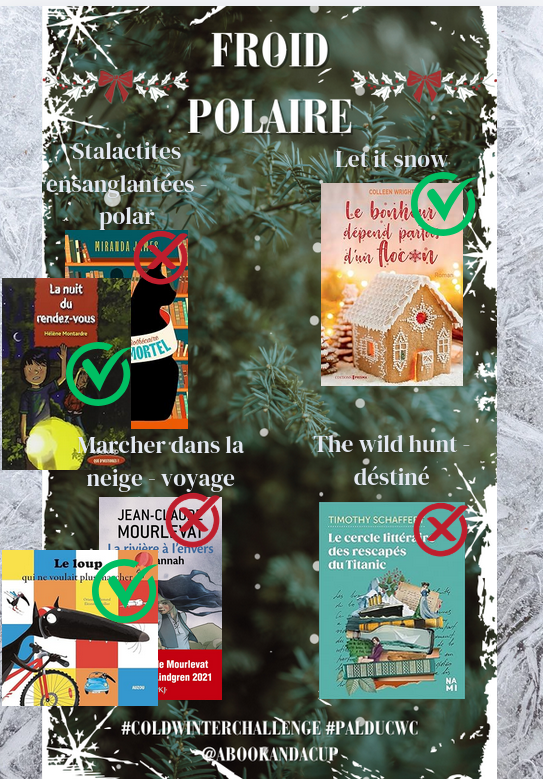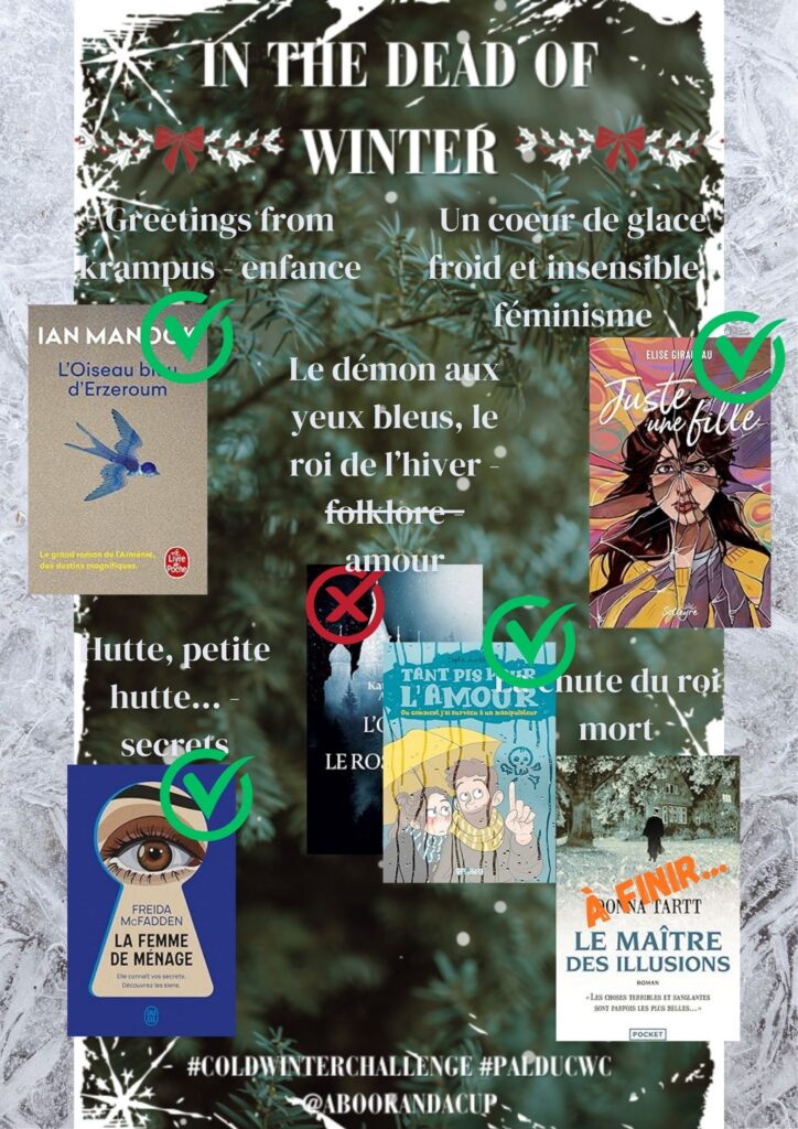 Cette année, je n’ai pas rempli le challenge complètement mais j’ai lu plus de lectures en lien avec l’hiver. Mon objectif est donc atteint 🙂
